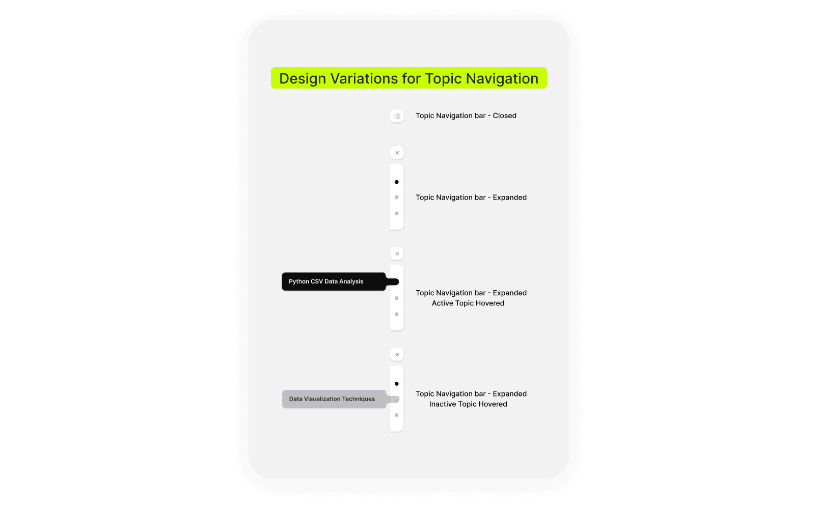Users wanted to move between topics directly inside the main chat without switching tabs. In response, we added a lightweight in-chat navigation bar that can be hidden or opened on demand, stays subtle by default, reveals topic names on hover, jumps to the exact section on click, and updates as users scroll.
