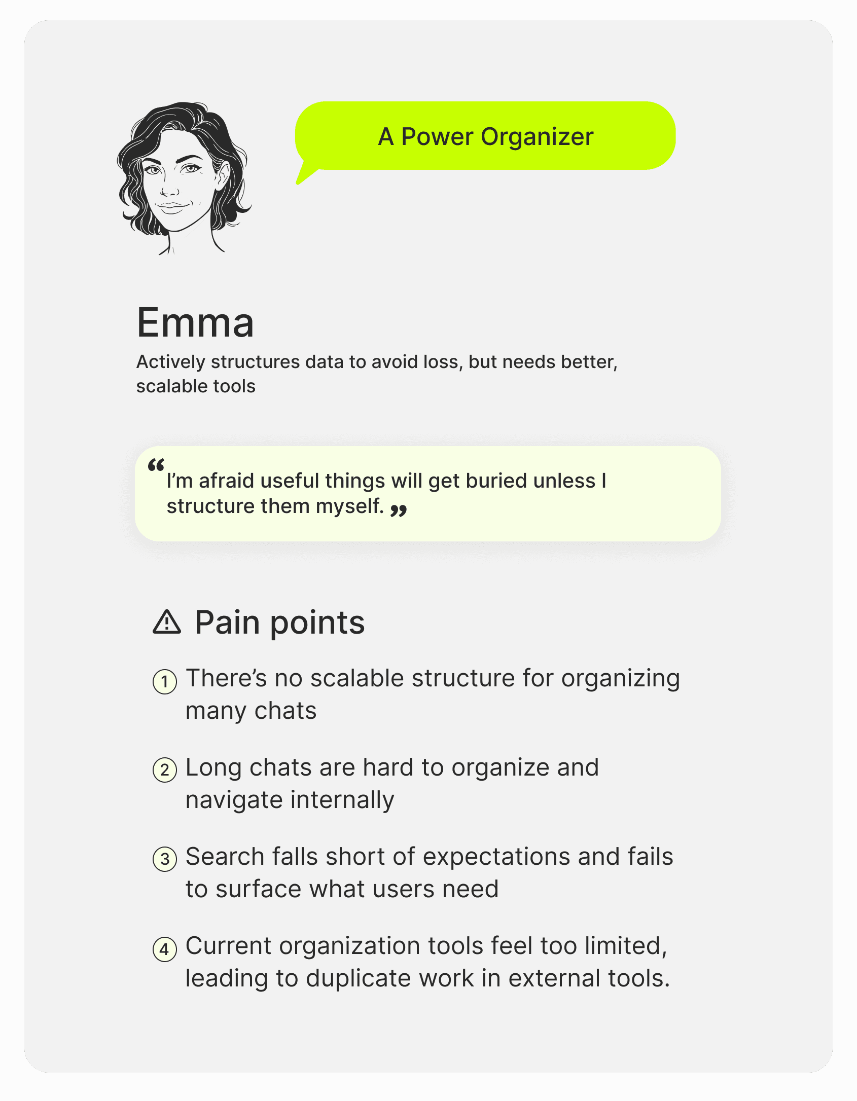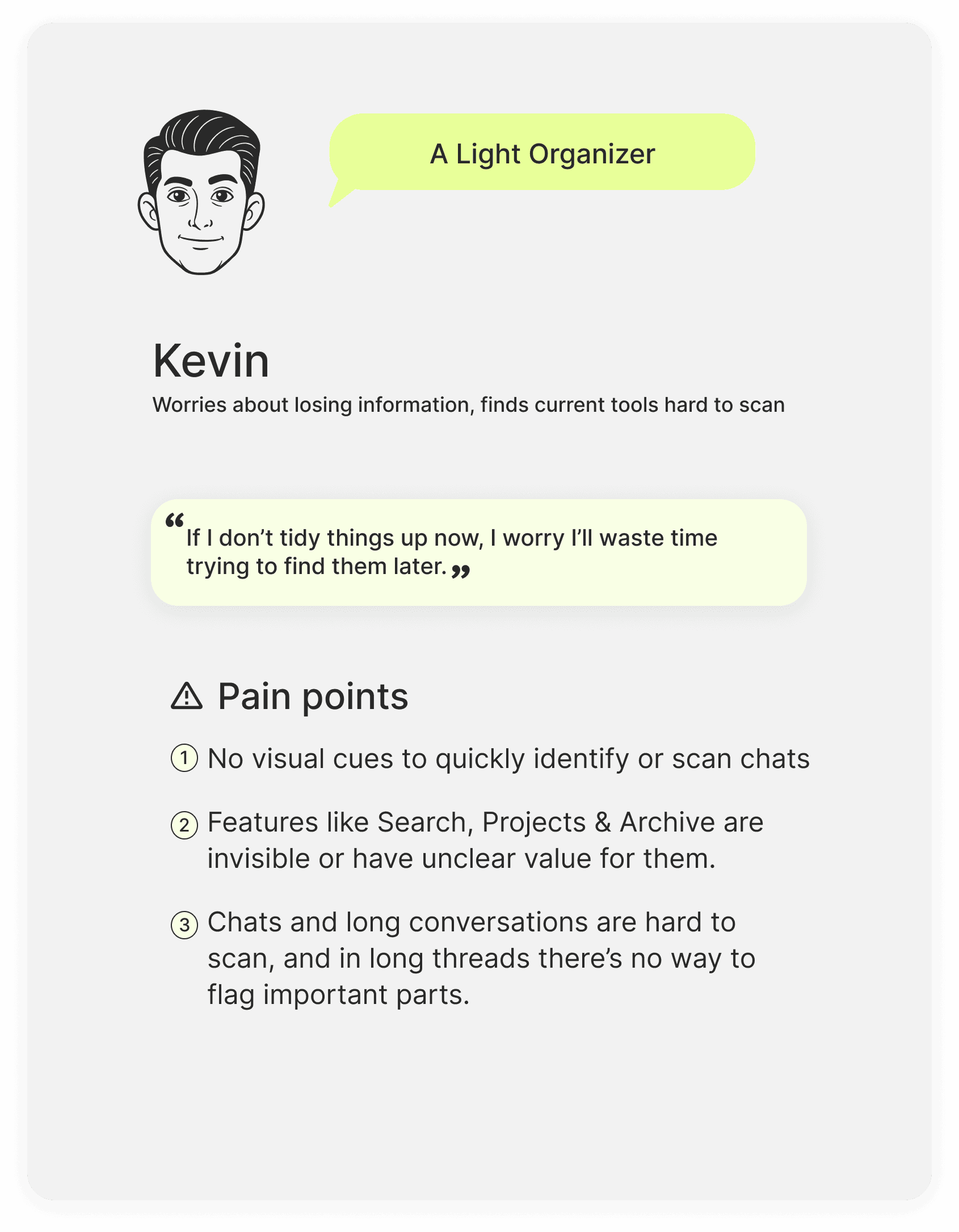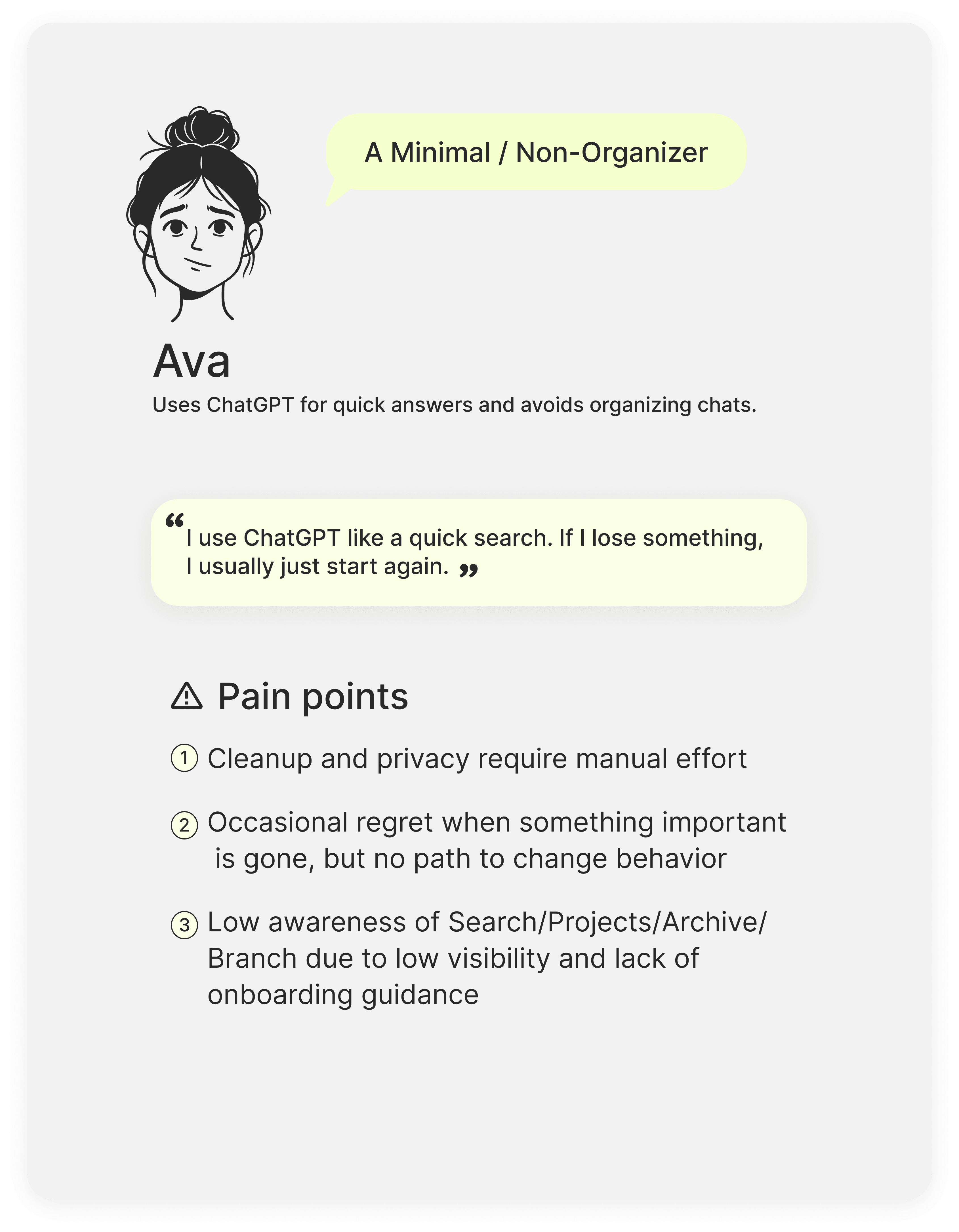 User interviews helped us identify three main patterns in how people organize their chats in ChatGPT