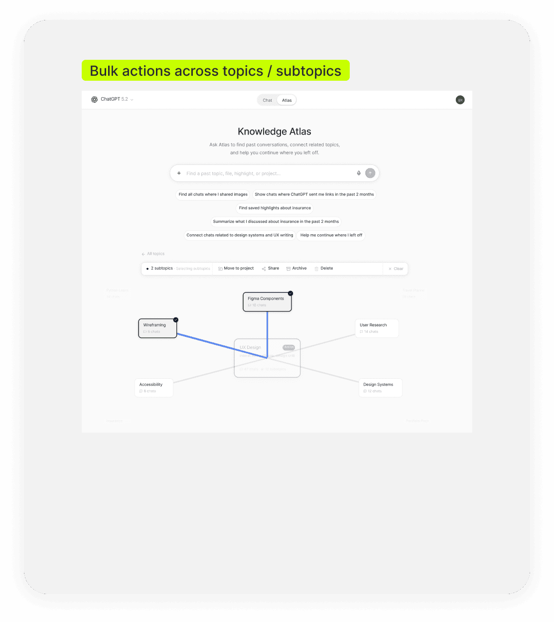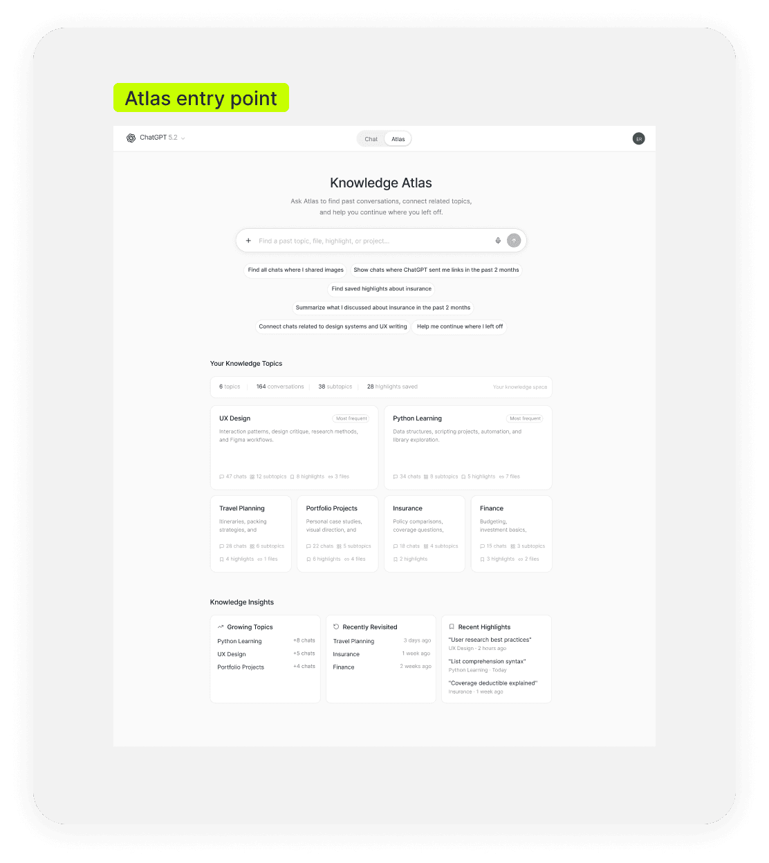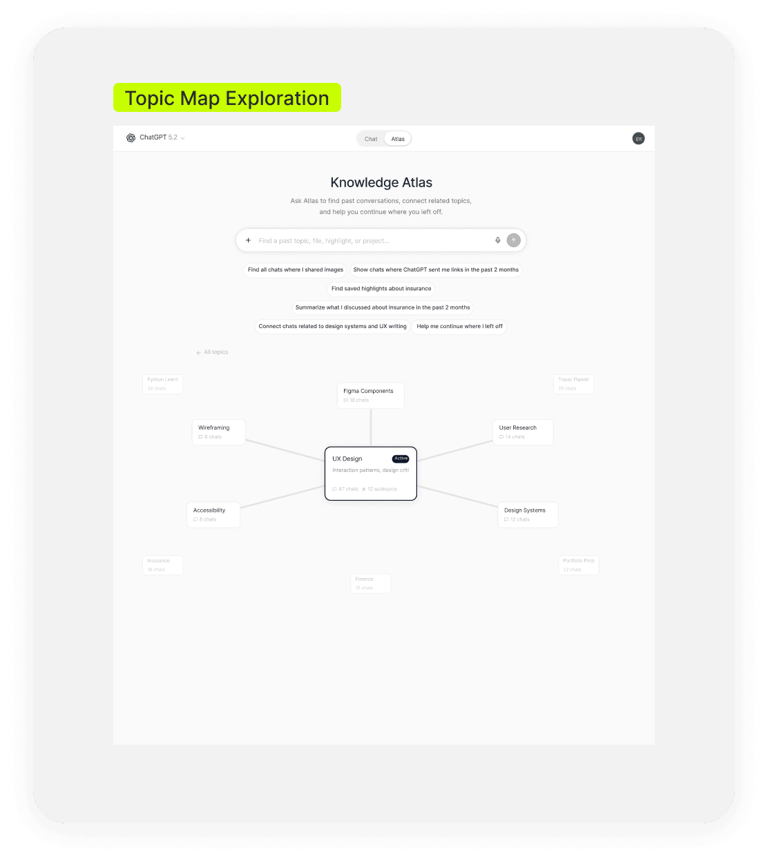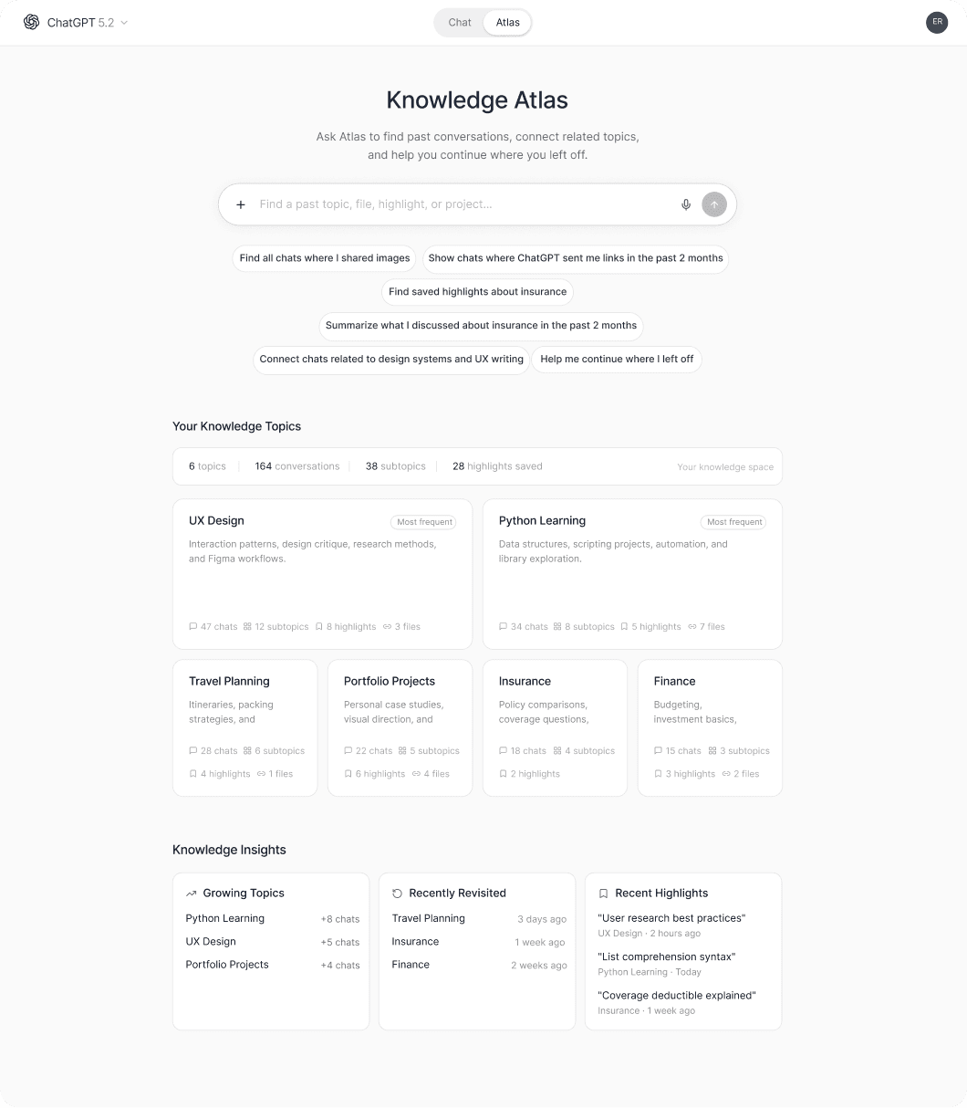 A north-star concept exploring how ChatGPT could shift from chat history to a connected knowledge system.